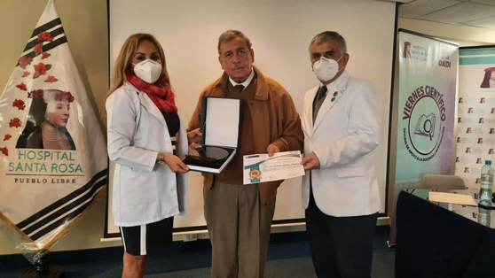 Esta segunda edición se hizo de manera presencial y vía zoom para todo el personal de salud. Organizado por la dirección general y la oficina de Apoyo a la Docencia e investigación de la institución, quienes al finalizar del evento condecoraron al doctor, José Gotuzzo Herencia, como “Amigo Ilustre del Hospital Santa Rosa”.