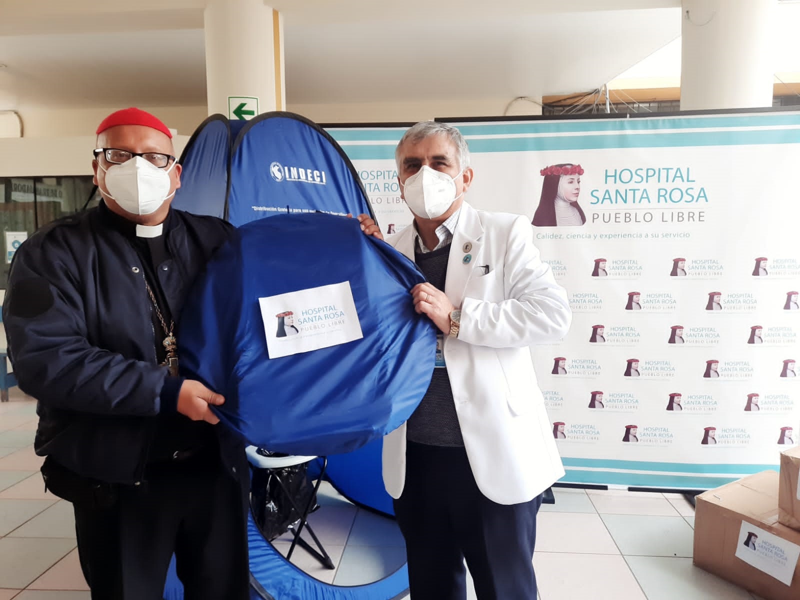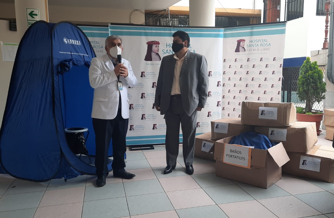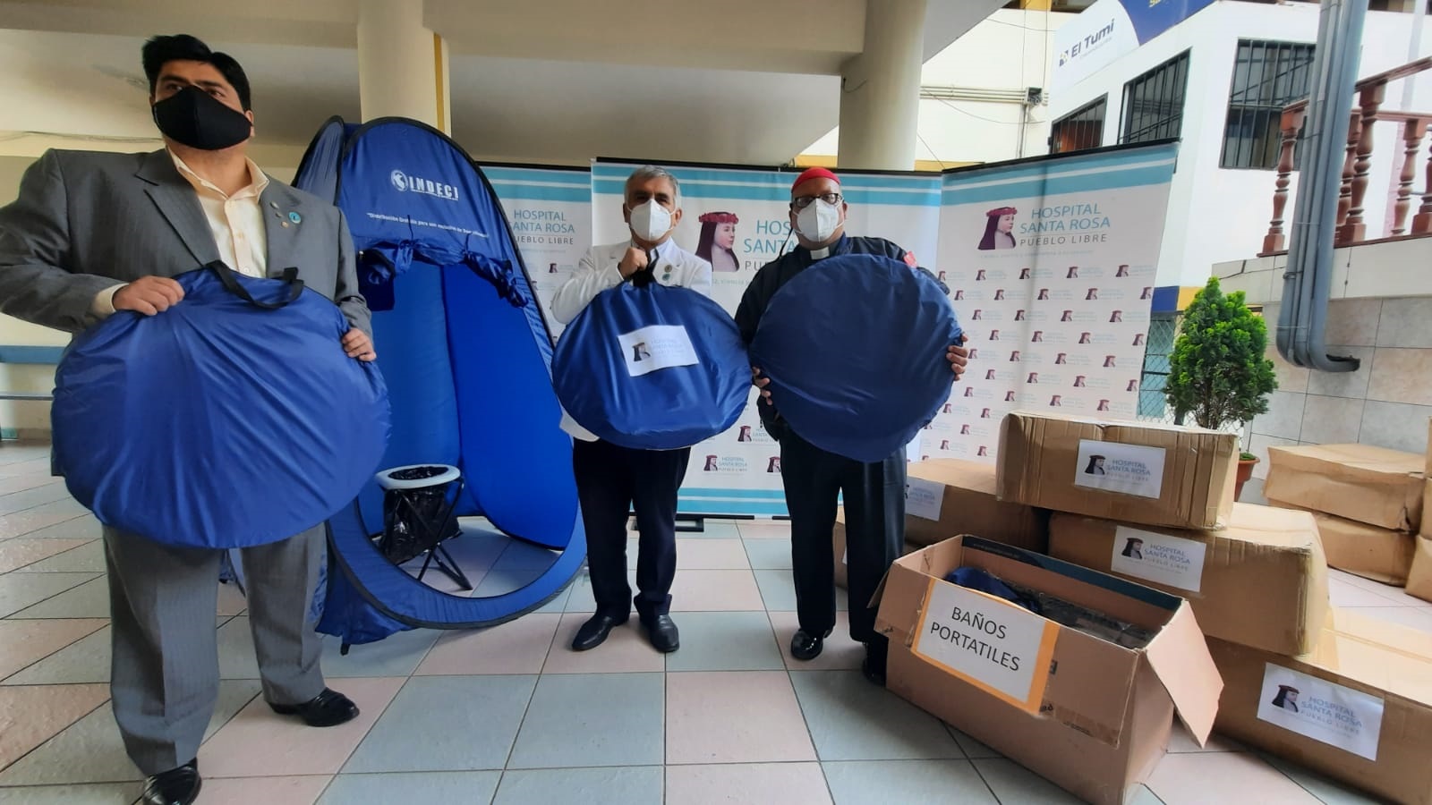 El hospital Santa Rosa dona 100 unidades de baños portátiles a la Iglesia Católica Apostólica Ortodoxa Del Perú y otras 50 unidades a la Asociación Civil por la Salud, la Educación y el Trabajo “Los Hijos del Sol”. Entidades privadas sin fines de lucro.