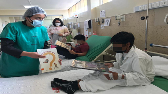 Los pacientes pediátricos del hospital Santa Rosa recibieron la visita del personal de la sala infantil, Amalia Aubry de Edson, de la Biblioteca Nacional del Perú, quienes compartieron, a través de dinámicas, manualidades y lectura de cuentos infantiles, momentos de alegría y entusiasmo con los niños que están hospitalizados.