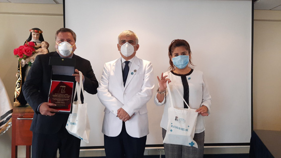 Motivo por el cual se hizo entrega de una placa institucional designando lo como Amigo Ilustre del nosocomio. Recuerdo que plasmara la gratitud y reconocimiento de todo el personal y pacientes de nuestra institución.